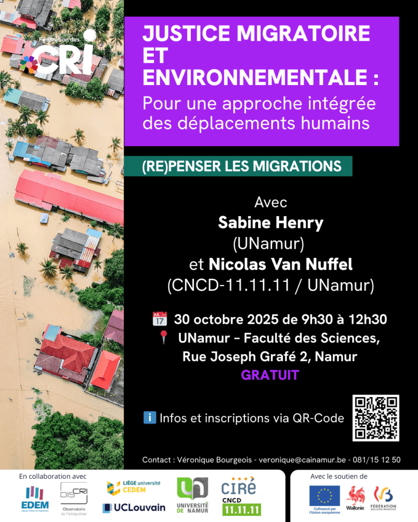 ⚖️ Le climat change, les migrations aussi. Comment penser ensemble justice climatique et justice migratoire ? Une conférence à deux voix qui met en lumière les déplacements liés aux crises environnementales et les réponses nécessaires pour garantir l’égalité des droits. 👥 Avec Sabine Henry (UNamur) et Nicolas Van Nuffel (CNCD-11.11.11 / UNamur). 🧑💻 x 🧑🏫 […]